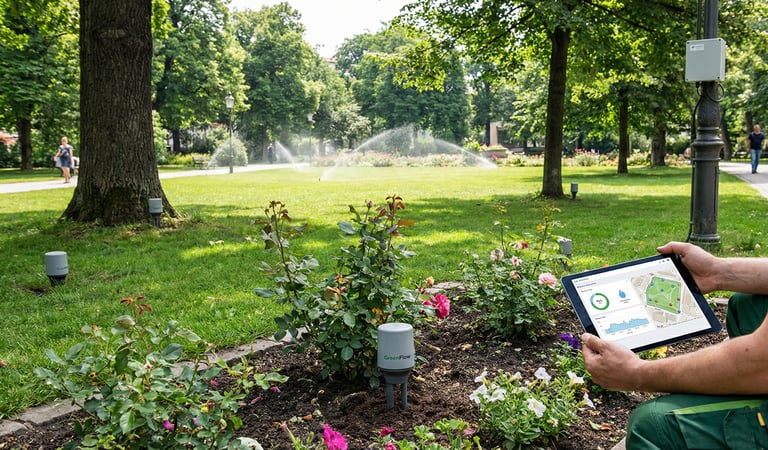 Park and garden irrigation in Europe is still, in many cases, a not-so-smart process: watering is done on a fixed schedule rather than based on the plants’ real needs. This leads to over-watering at certain times and water shortages at others, resulting in yellowing lawns, deteriorated areas, and a poor experience for citizens.
